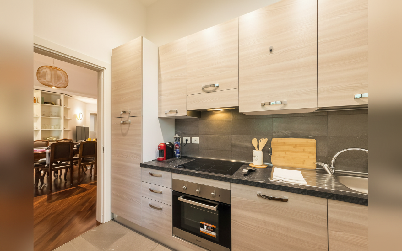 Angolo cottura attrezzato per la preparazione dei pasti.