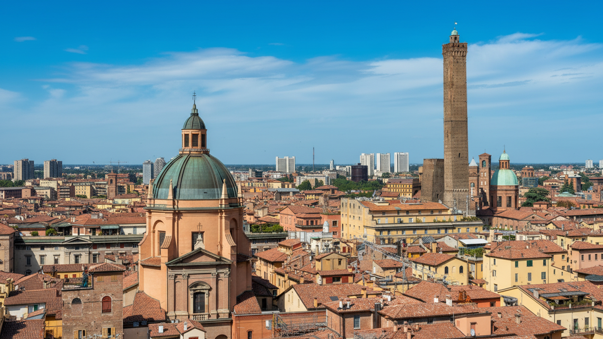 Simboli di Bologna, la Torre degli Asinelli e la Torre Garisenda offrono una vista panoramica sulla città.