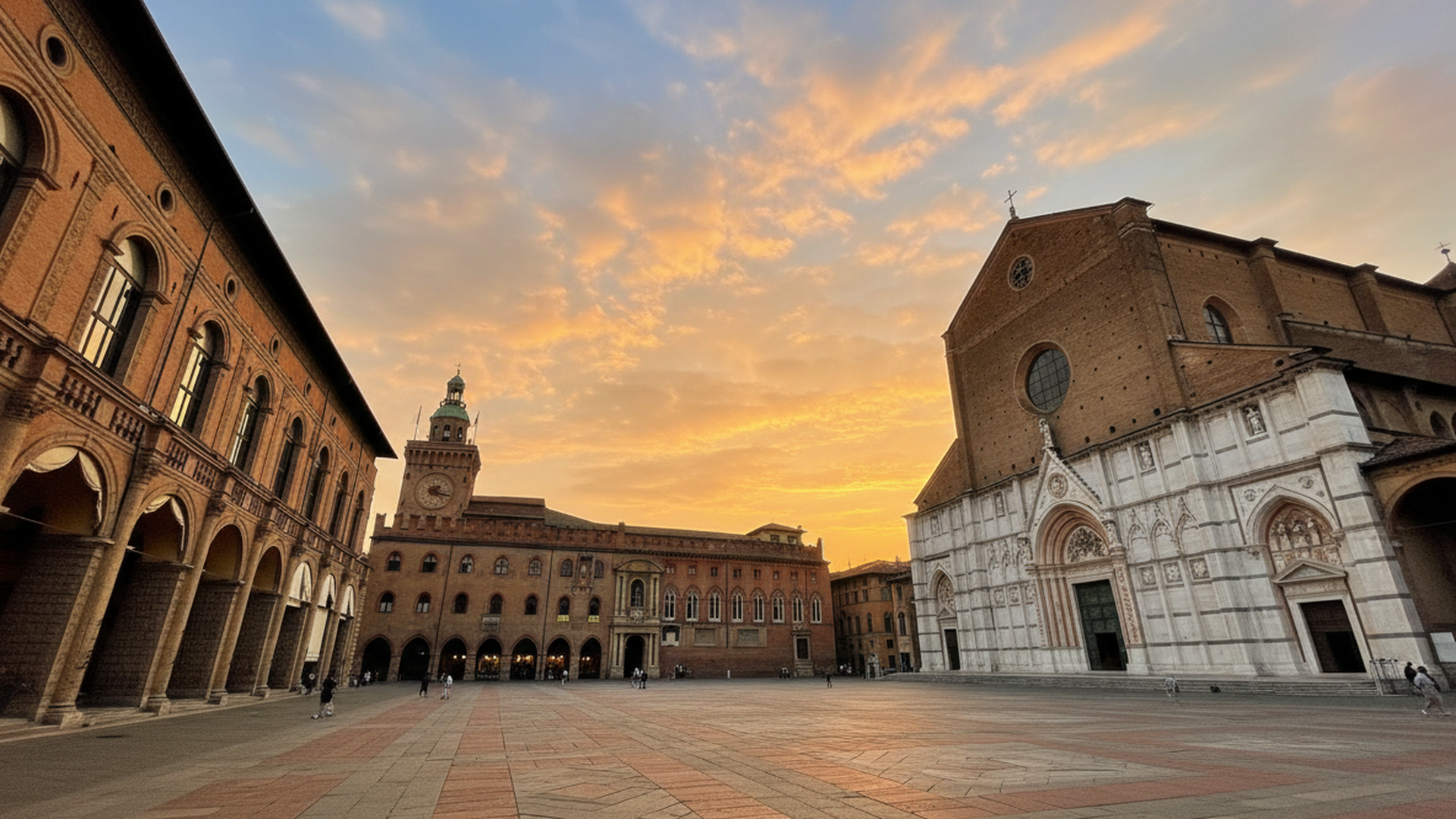 La piazza principale di Bologna, circondata da edifici storici e monumenti.